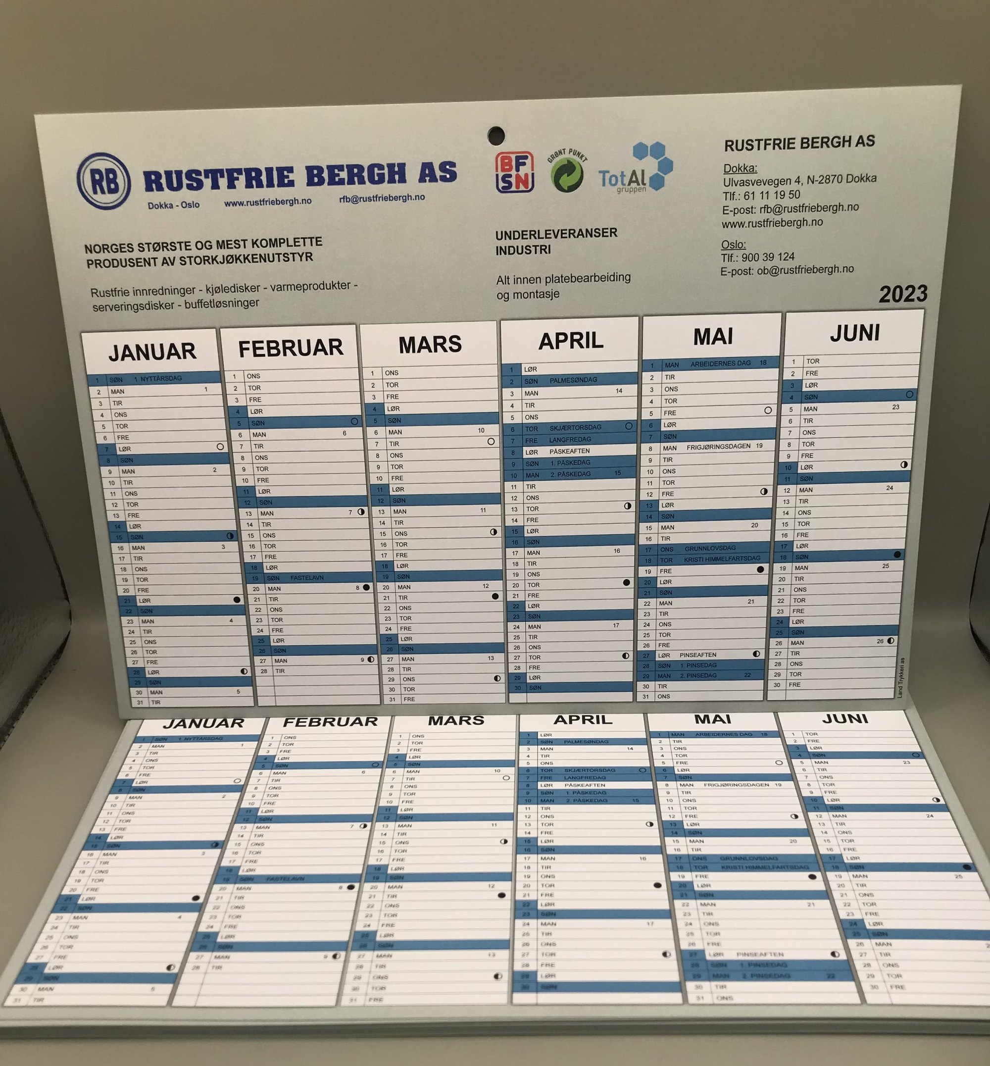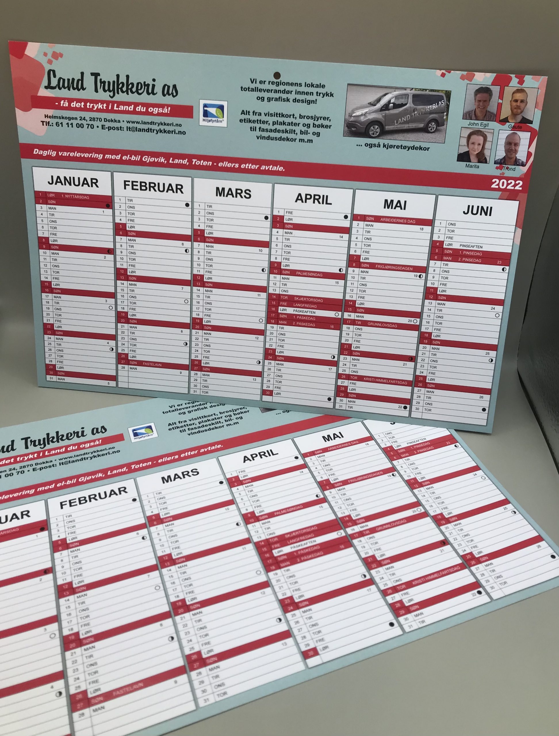 Vi produserer også kalendere i alle formater. Ønsker du ryggstiftet, spiraloppheng eller limte ark kanskje? Hva med en platekalender i A4 eller storformat? En eller flere sider? Vi hjelper deg med korrekt valg. En reklamekalender for din bedrift , familiekalender eller en medlemskalender til din forening.